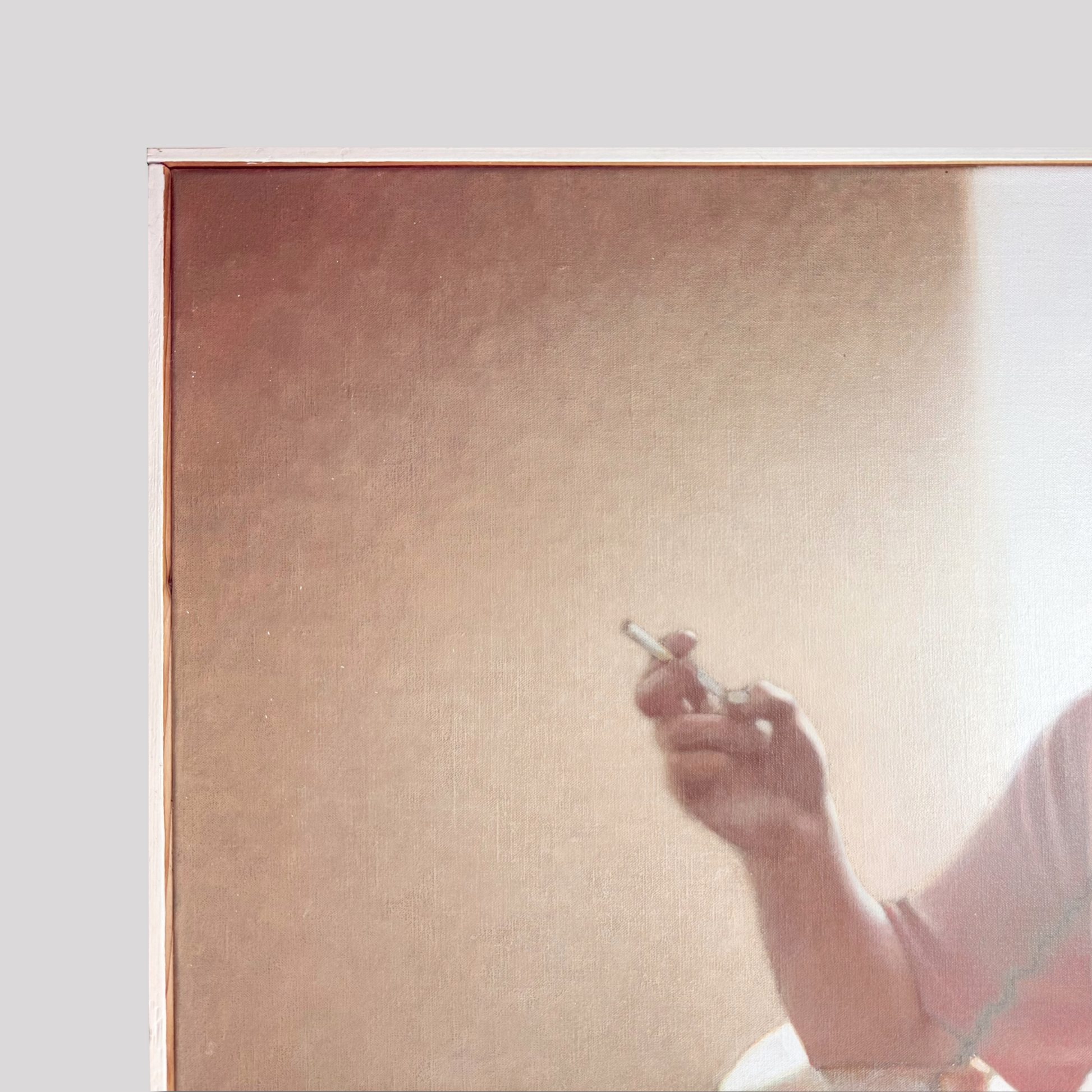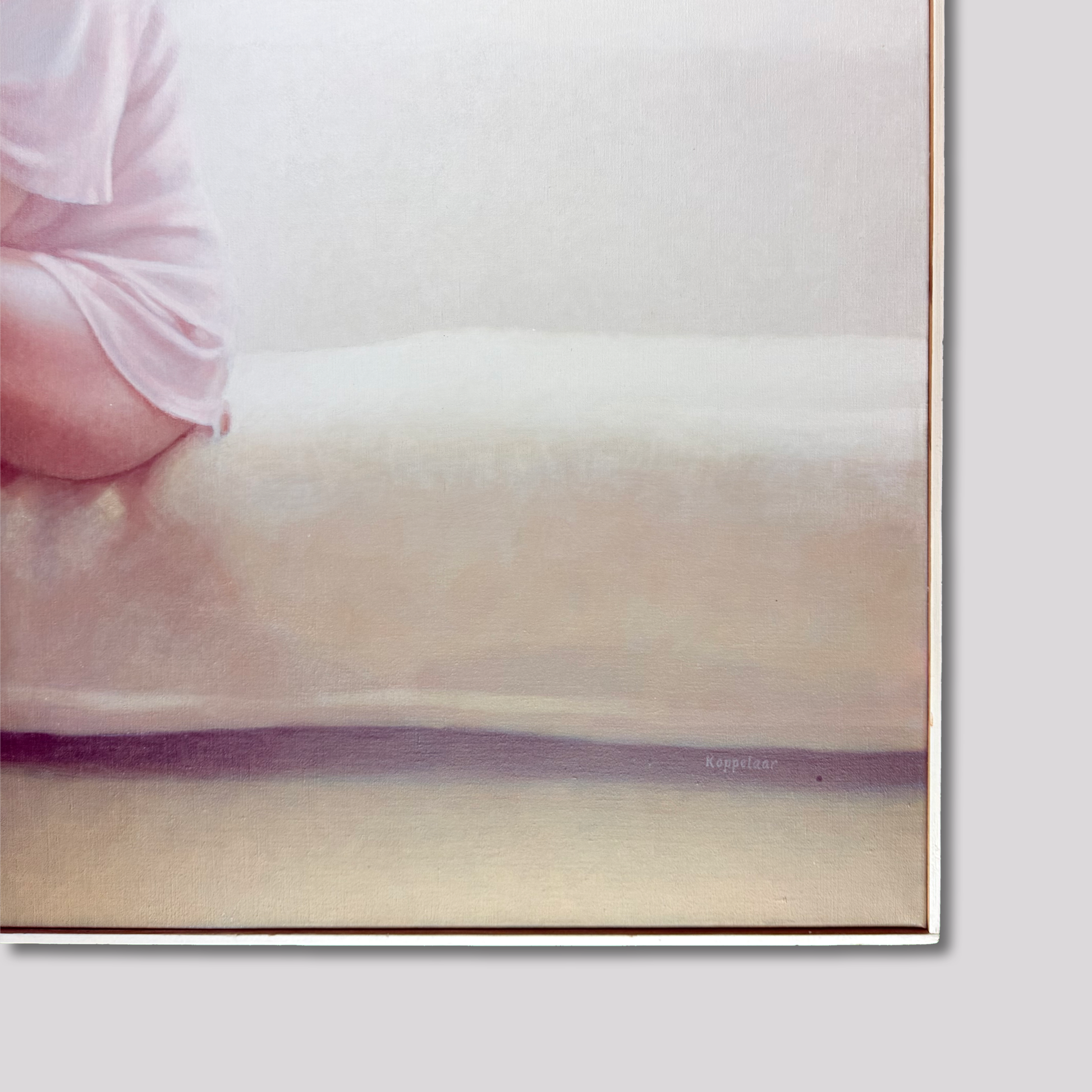 "Burn-ie" is een handgesigneerd acrylschilderij uit 1984 van Frans Koppelaar, een kunstenaar met diepe wortels in de Haagse School en het Amsterdams impressionisme. Opgeleid aan de Koninklijke Academie van Beeldende Kunsten in Den Haag (1963-1969), exposeerde hij in o.a. The Chambers Gallery in Londen en het Stedelijk Museum Amsterdam. Dit kunstwerk is een unieke kans om een stukje Nederlandse schilderkunst in huis te halen.