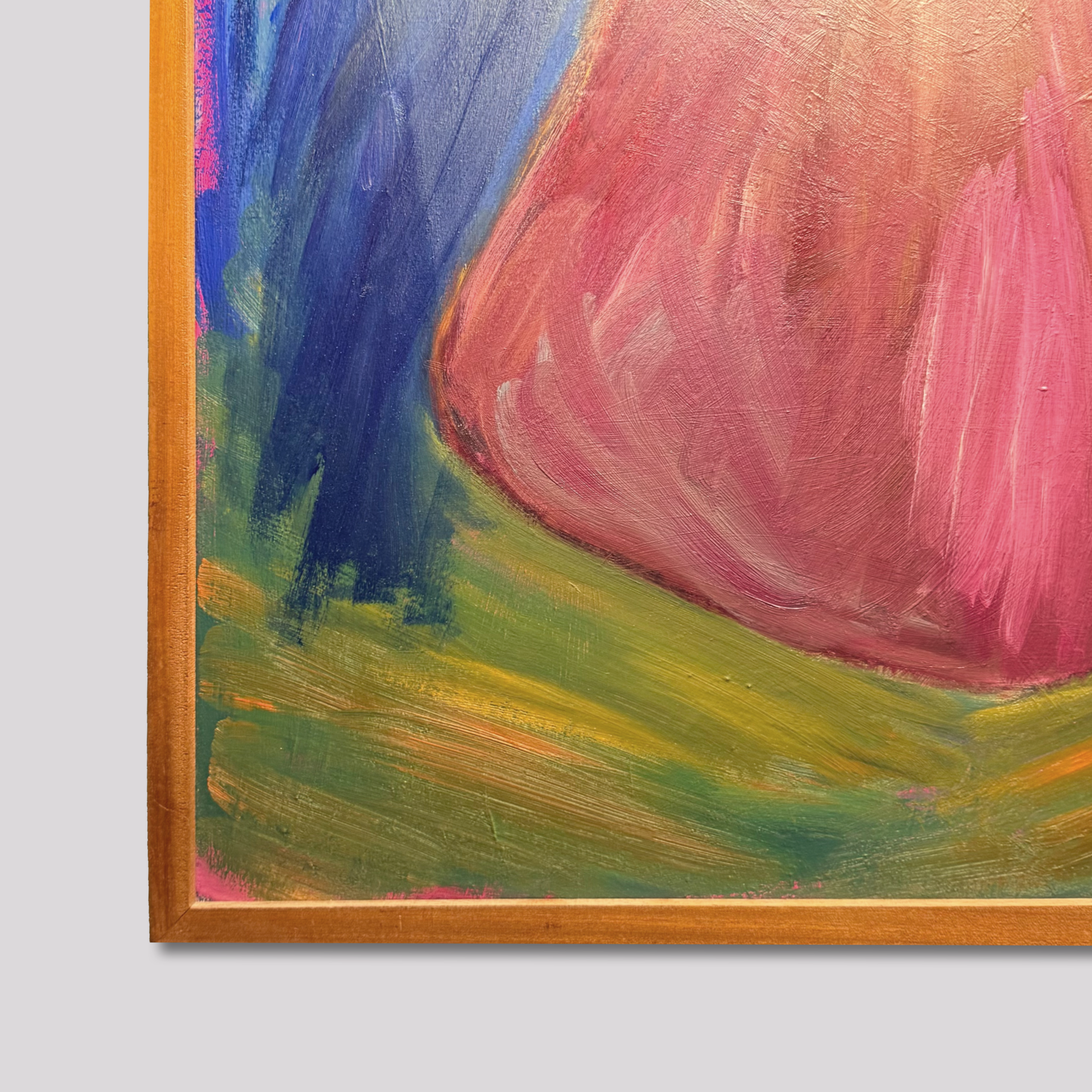 Dit kleurrijke, handgesigneerde olieverfschilderij uit 1984 van Hans Kuijs straalt passie en diepte uit. Kuijs studeerde in 1971 af aan de Royal Academy of Art and Design in Den Bosch en heeft zijn werken tentoongesteld in toonaangevende kunstinstellingen zoals de Kentler Gallery in New York en het Stedelijk Museum Roermond. Een tijdloos kunstwerk met internationale allure, perfect voor liefhebbers van emotie in kunst.